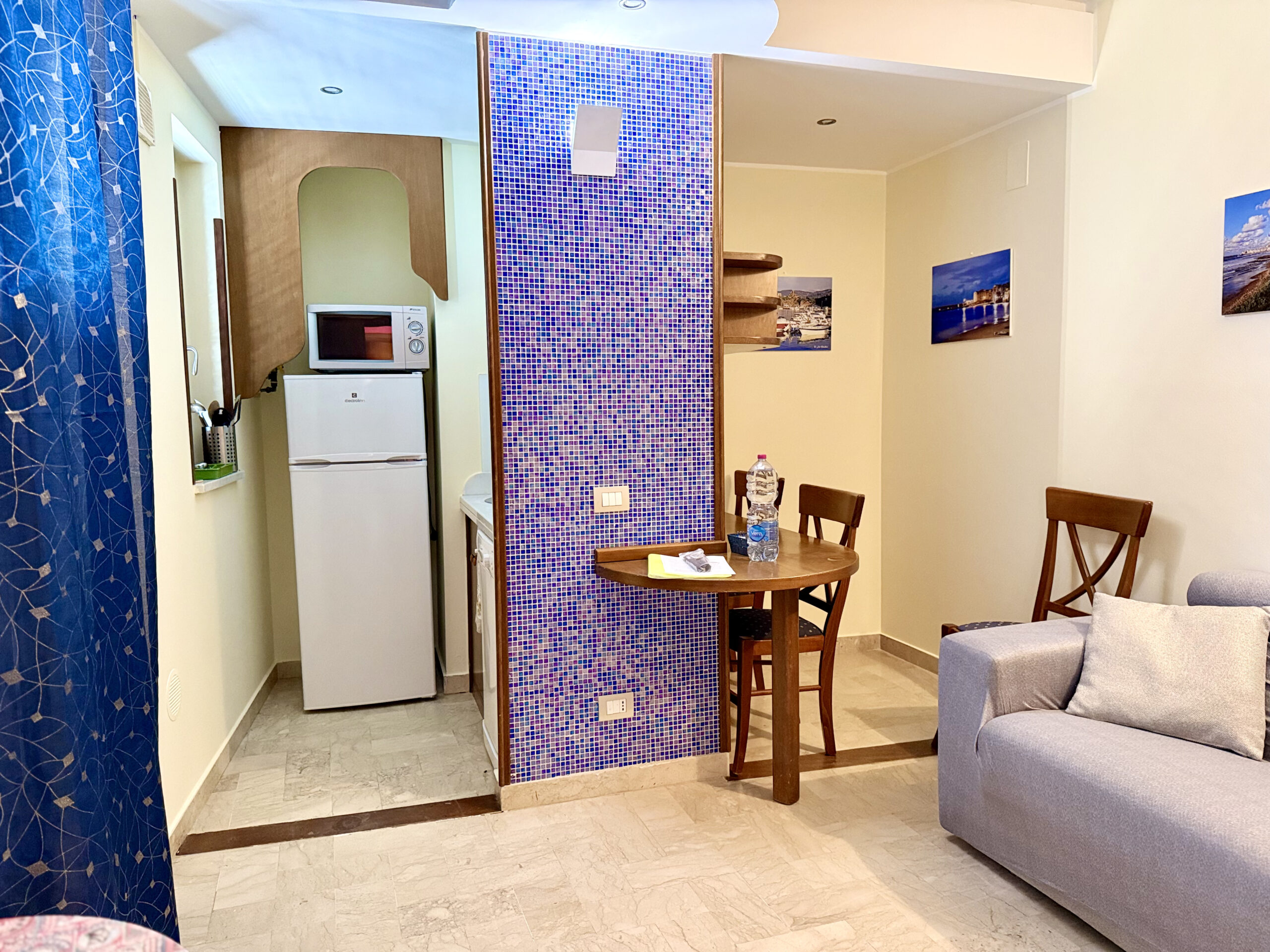 Each of these charming apartments combines tradition with modern comfort. They feature an inviting double bedroom, a comfortable living room with a sofa bed, an open kitchenette, and a balcony that captures the sea breeze. Perfect for those seeking tranquility with everything close at hand.